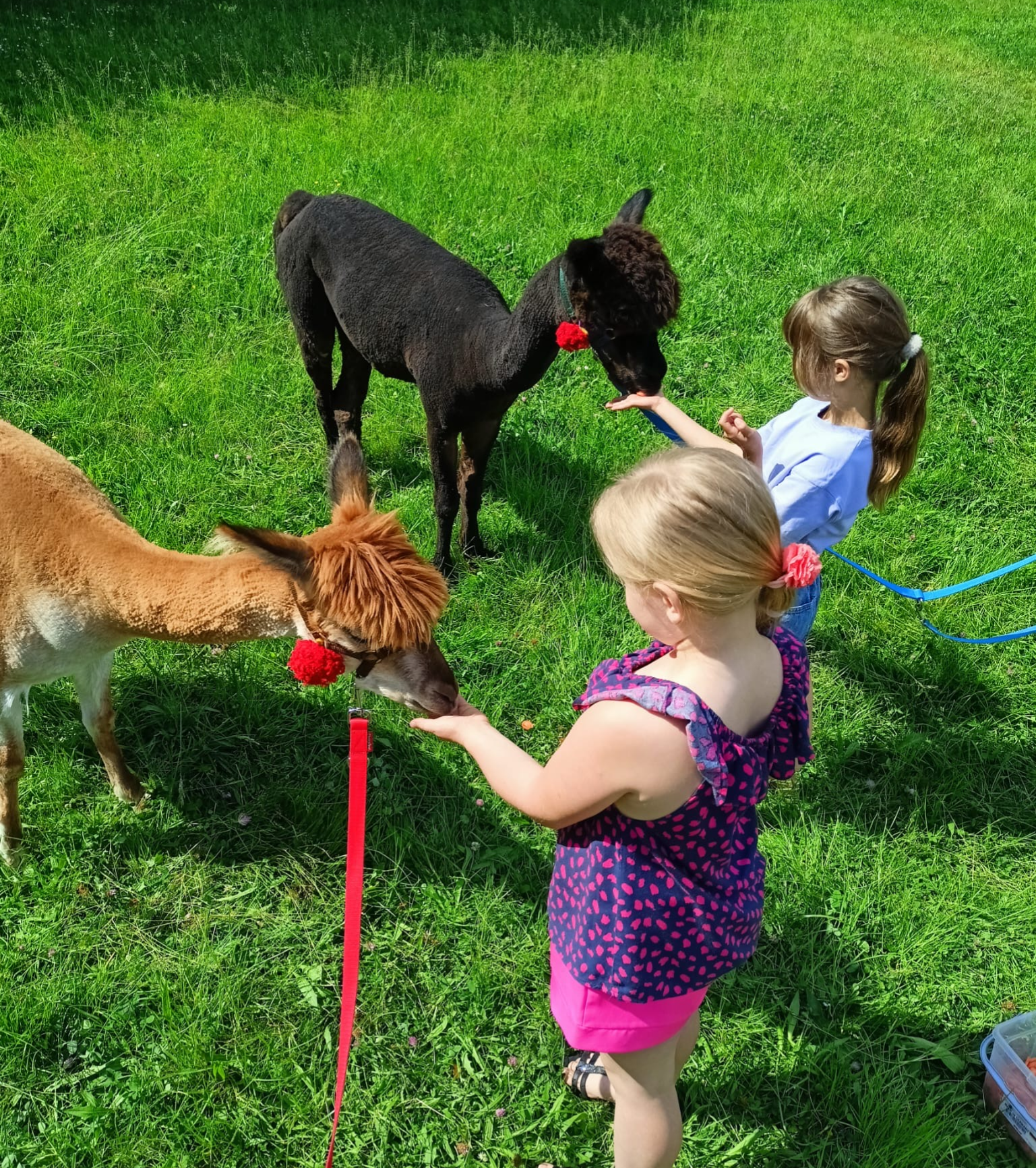 - każdy ma możliwość pójścia z alpaką na mini spacer oraz pogłaskać i nakarmić alpakę